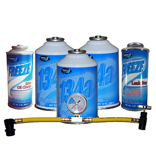 Johnsen's R-134a Complete Car Kit Refrigerant, Oil Charge, Stop Leak & Can Tap with Gauge