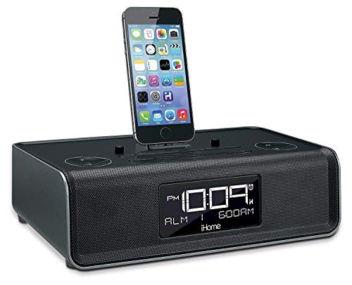 iHome iDL44 Alarm Clock FM Radio with Lightning iPhone Charging Dock Station for iPhone XS, XS Max, XR, X, iPhone 8/7/6 Plus USB Port to Charge any USB Device