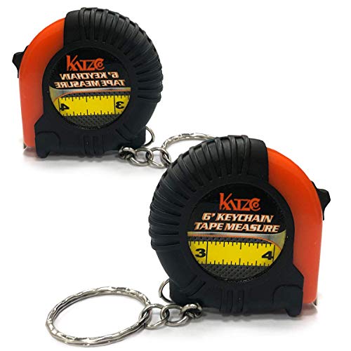 Katzco 6 Foot Long Keychain Tape Measure - 2 Pack - Thumb Power Lock Measuring Tape - High Carbon Steel Blade and Shock Absorbent Case - for Professional and Amateur Workers