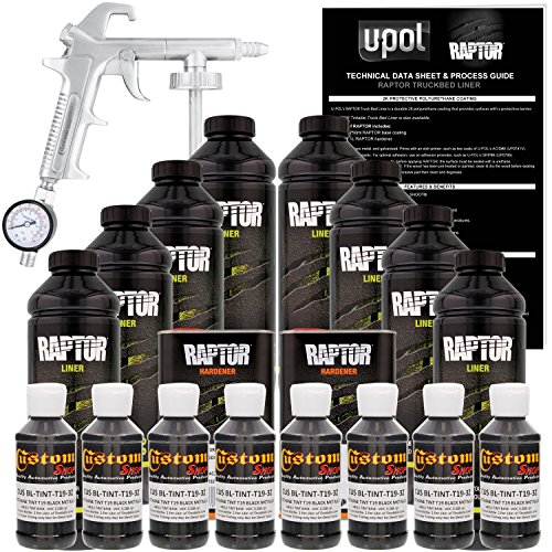 U-POL Raptor Black Metallic Urethane Spray-On Truck Bed Liner Kit w/ FREE Spray Gun, 8 Liters