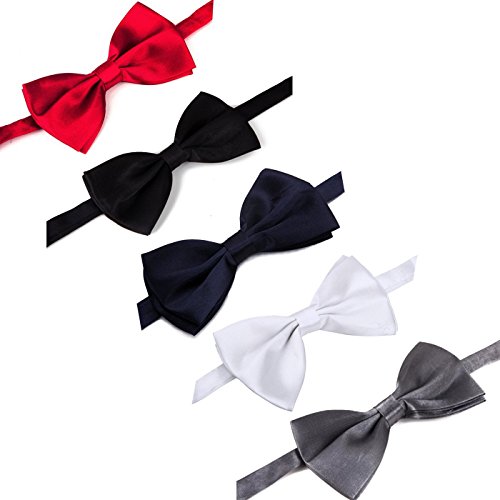 HDE Bow Ties Wedding Party 5-Pack Solid Color Adjustable Formal Tuxedo Neckties