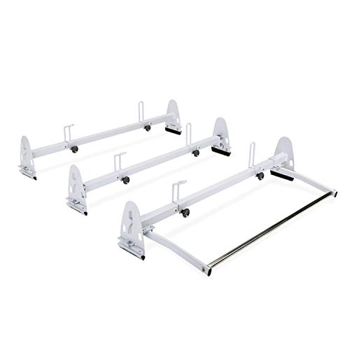 AA-Racks Model RX27 Fullsize Steel Three-Bar Van Ladder Roof Racks With Middle Adjustable Bar and Cargo Roller - Black