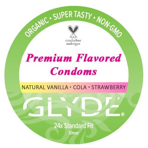 GLYDE Natural Flavored Condom Variety Pack 24 Count - Vanilla - Strawberry - Cola, Non-GMO and Organic