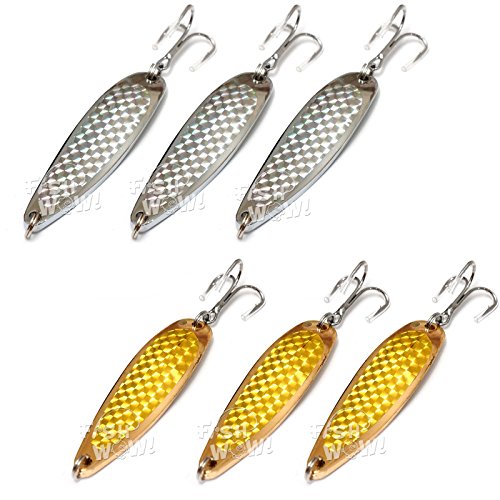 Fish WOW! 6pcs Set 2oz 6inch Fishing Spoon with Treble Hook Gold & Silver