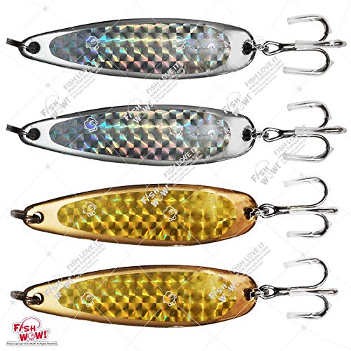 Fish WOW! 4pcs 3oz 6inch Fishing Spoon with a Treble Hook Gold & Silver