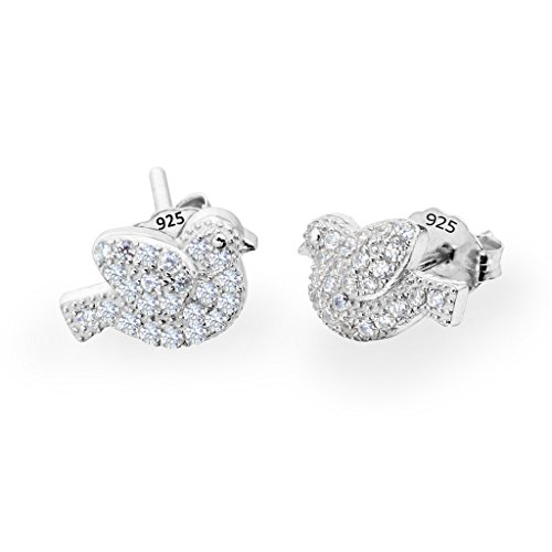 EVER FAITH 925 Sterling Silver Cubic Zirconia 3D Cute Animal Birds Stud Earrings Clear