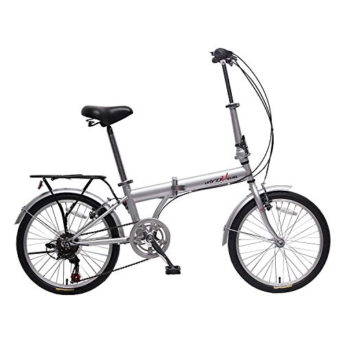 IDS Home unYOUsual U Transformer 20" Folding City Bike Bicycle 6 Speed Shimano Gear Steel Frame Mudguard Rear Carrier Front Rear Wheel Reflectors (Silver)