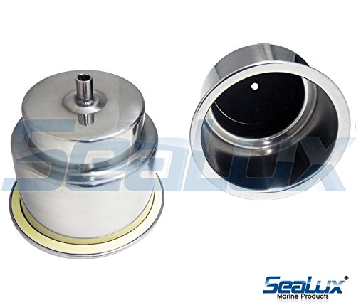 (Set of 4) SeaLux Marine Flush Recessed 316 SS Drink Holder with 3/8" drain tube