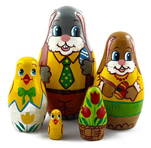 Bunny Easter Matryoshka Nesting Wooden Dolls Holidays Gifts, Best Presents For Kids Apartment Decorating Ideas Infant Toys For Toddlers 5pc