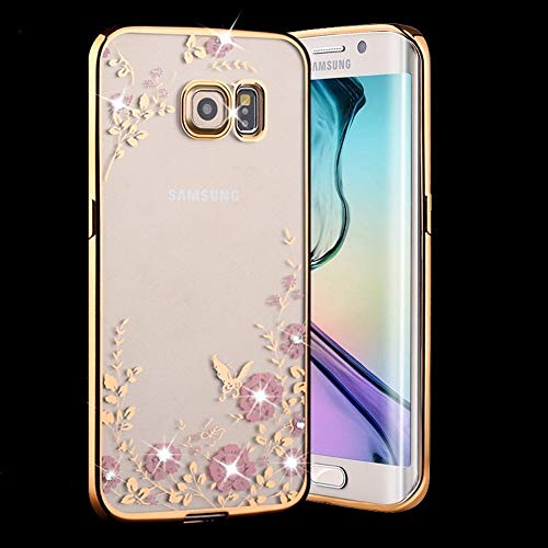 Samsung Galaxy S7 Edge Case,Inspirationc [Secret Garden] Rose Gold and Yellow TPU Plating Clear Shiny Cover Series for Samsung Galaxy S7 Edge--Swarovski