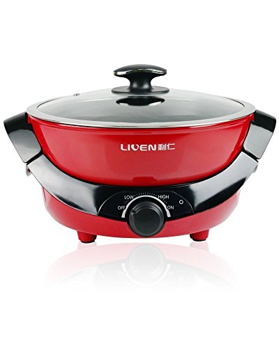 Liven HG-S480A Dual Sided Electric Hot Pot with Divider, Shaba Shabu Non-stick, 1200W, Red