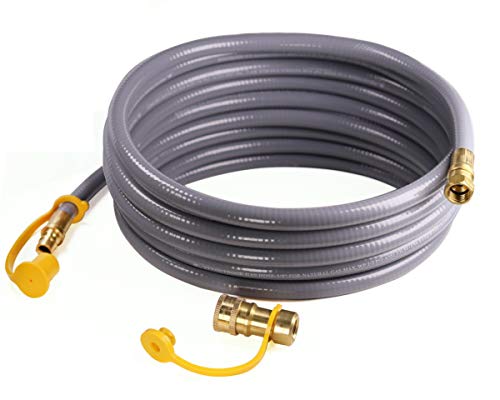 DOZYANT 12 Feet 3/8 inch ID Natural Gas Grill Hose with Quick Connect Propane Gas Hose Assembly for Low Pressure Appliance -3/8 Female Pipe Thread x 3/8 Male Flare Quick Disconnect - CSA Certified