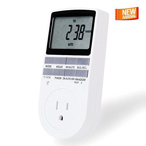 Elecrainbow® 7-day LCD Programmable Plug-in Digital Timer Switch with 3-Prong Timer Outlet for Home Lights and Appliances - 120V/15A/1800W