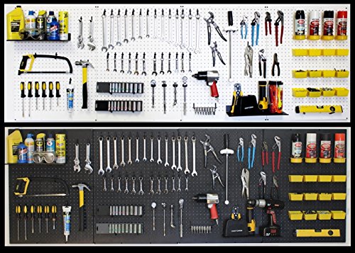 WallPeg pegboard Panels, Shelves, Bins, Locking peg Hooks Garage Storage kit 96 W-B (Black)