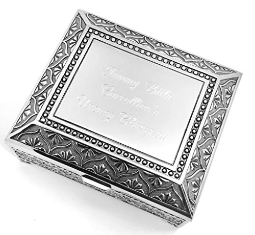 Newfavors Personalized Jewelry Box with 3 Lines Text Engraving - Engraved 4 Inch Antique Jewelry Box Bridesmaid or Flower Girl Gift
