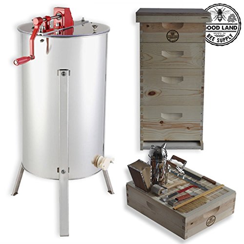 GOODLAND BEE SUPPLY Complete 4 Tier Beginners Bee Hive Kit, Honey Extractor, and Beekeepers Tool Kit - GLBSE4STACKCTS1