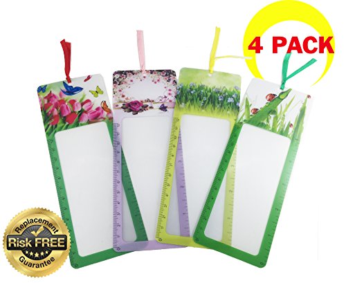 Premium 4-Pack Flower Series Bookmark Magnifiers with Built in Ruler 3X Magnification- Ideal for Reading & Low Vision Aids