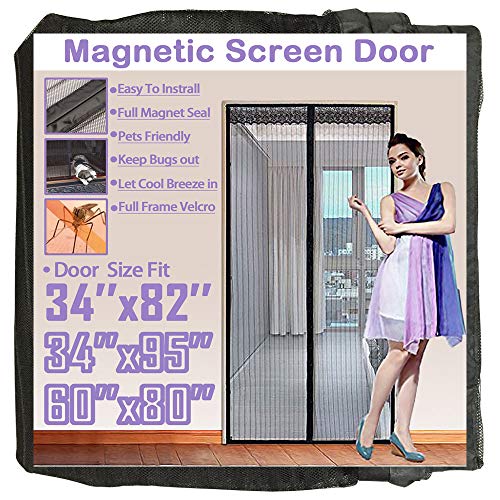 TheFitLife 36''x83'' Magnetic Screen Door Fits doors up to 34''x82'' Max Full Frame Hook and Loop Heavy Duty Mesh