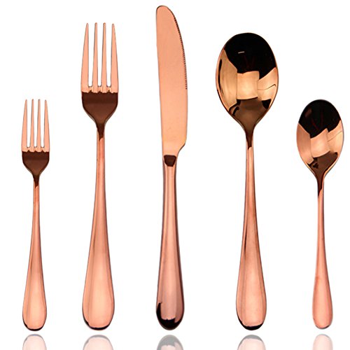 Flatware Sets Rose Gold, AOOSY Luxury 20 Pieces Rose Gold Plated Copper Color 18/10 Stainless Steel Silverware Flatware Sets Spoons Knives and Forks Set, Service for 4 People