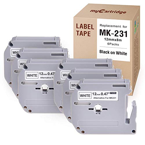 MYCARTRIDGE M231 Compatible with Brother M Tape P-Touch MK231 M-K231 Label Tape 12mm Black on White (6-Pack) for Brother P-Touch PT-90 PT-M95 PTM95M PT-70SR PT-80 Label Maker, 0.47 in x 26.2 ft