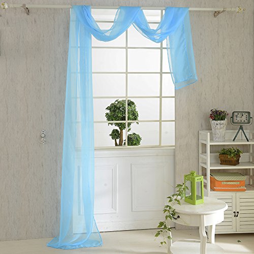 Sunlilee Solid Voile Sheer Scarf Valance Washable 31.5" X 216" (Blue)