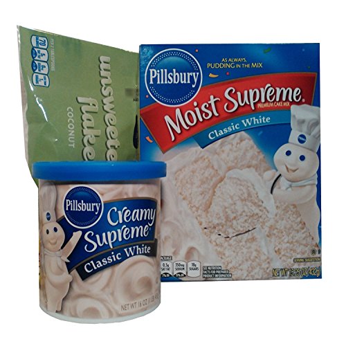 Spring White Cake Baking Bundle - 3 Items:Pillsbury Classic White Cake Mix and Frosting with Flaked Coconut Topping