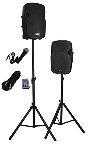 Epic USA Pro Audio System15 Dual 15" Powered Speakers with Bluetooth MP3 Player, Speaker Stands, Microphone, Cables & Remote Control