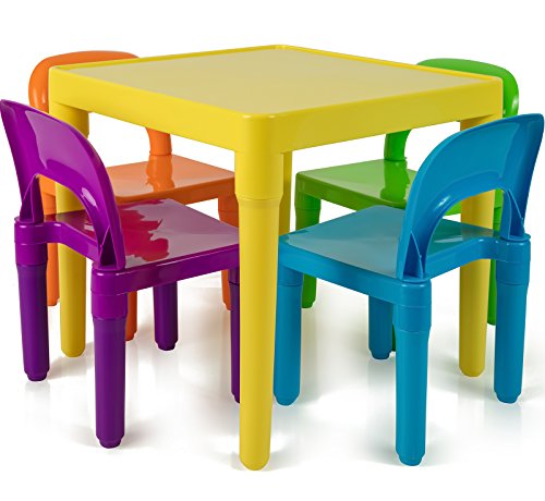 OxGord PLTC-01 Kids Plastic Table and Chairs Set (4 Chairs and 1 Table)