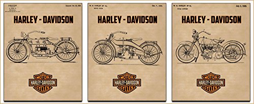 Harley Davidson Original Patent 3 Pack of 1919,1924, and 1928 Motorcycle (8 inches by 10 inches)