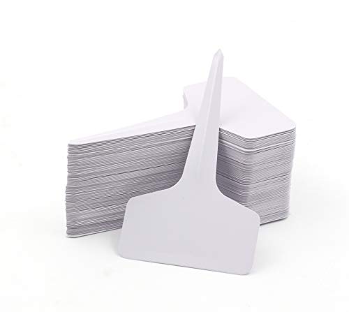 Prudance 100pcs PVC Waterproof T Tag Plant Markers,Premium Nursery Garden Labels, Eco Friendly,White