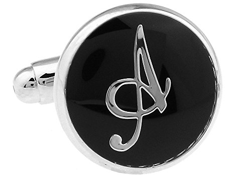 LBFEEL Black Initial Cufflinks for Men from A-Z with a Gift Box