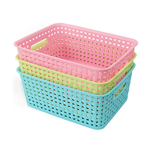 Nicesh Plastic Storage Baskets for Household, Office Supplies, Set of 3