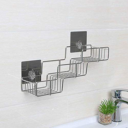 Disumos Bathroom/Kitchen Stainless Steel Shower No Drilling Holder Wall-Mounted Toiletries Storage Rack( with Stickers)