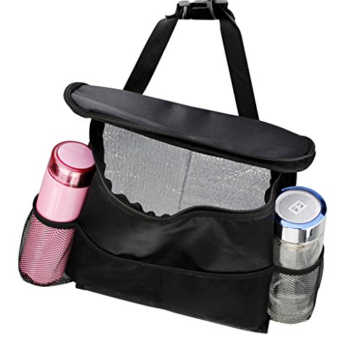 Black Car Seat Organizer/Auto Seat Back Organizer/Multi-Pocket Travel Storage Bag/Insulated Car Seat Back Drinks Holder Cooler / Storage Bag Cool Wrap Bottle Bag with Mesh Pockets
