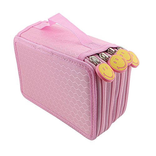 Huhuhero 72-Slot Pink Multi-Layer Pencil Holder Organizer Colored Pencils Pouch Stationary Box Portable Makeup Cosmetic Case Bag with Zipper for Girls Adults for Art School Office for Travel