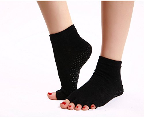 HuaQi Women Yoga Socks Toeless Pilates Gym Grip Non Skid Non Slip Socks, Half-Toe Sock