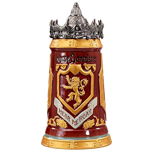 Game of Thrones House Lannister Stein - 22 Ounces Ceramic Base with Pewter Baratheon Crown Top