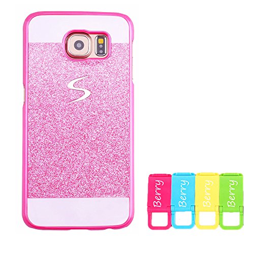 Galaxy S7 Edge Case, Berry Accessory(TM) Beauty Luxury Diamond Hybrid Glitter Bling Hard Shiny Sparkling with Crystal Rhinestone Cover Case for Samsung Galaxy S7 Edge + Berry logo stand holder (Pink)