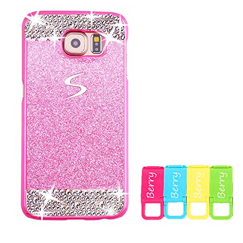Galaxy S7 Case, Berry Accessory(TM) Beauty Luxury Diamond Hybrid Glitter Bling Hard Shiny Sparkling with Crystal Rhinestone Cover Case for Samsung Galaxy S7 + Berry logo stand holder (Pink + Bling)