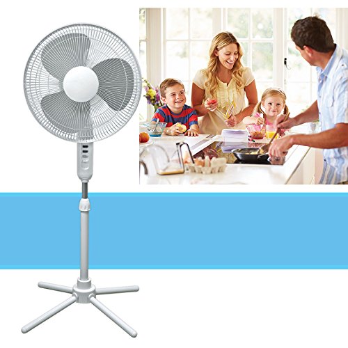 HowPlumb Oscillating Pedestal Stand Fan Quiet Adjustable 16-in. 3 Speed, White