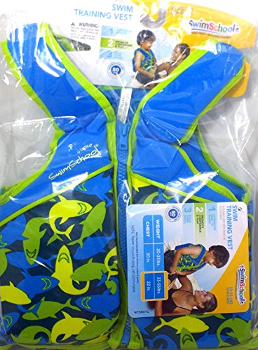 Aqua SwimSchool - Swim Training Vest - Boys - Blue / Green Sharks - Aqua Leisure - Confidence Building System Stage 2 - (33 to 55 lbs - 22" Chest) - WTS9571L