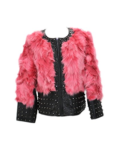 417242 New Pink Fox Fur Sections Leather with Studs Jacket Coat Stroller Small