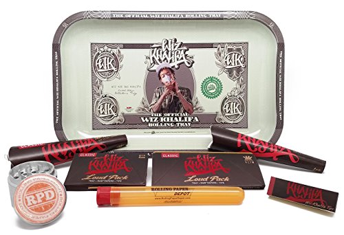 Bundle - 8 Items - Wiz Khalifa RAW Tray with Cones, Tips, Loud Packs, RPD Grinder and Doob Tube