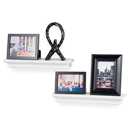 brightmaison Crown Molding Floating Shelves Picture Ledge – 2 Set Shelf – for Frames Book Display Décor with Concealed Metal Bracket for Stable Wall Mount (White)
