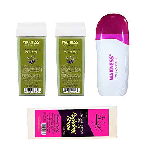 Wax Necessities Wax Heater WX1C 2 x Olive Soft Wax Cartridge 1 X Epilating Strips