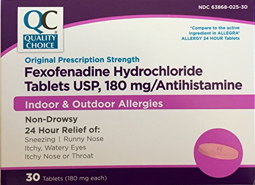 Fexofenadine 180 mg Generic for Allegra 24 Hour Allergy Relief 30 Tablets per Box