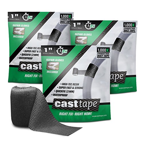 CASTtape - Super Epoxy Carbon Fiber Tape - 100x Strength of Duct Tape - Fix & Repair: Automotive, Plumbing, Pipe & Hose, Emergency, DIY - 3 Roll ProPack, 1" x 40" Rolls
