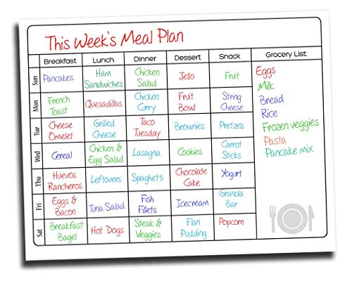 White Weekly Meal Planner ● Dry Erase Vinyl Decal Adhesive Wall Sticker ● Daily To Do Menu Memo Message Planning & Organization ● Compatible with Dry/Wet & Liquid Chalk Markers ● 17" x 13" Inches