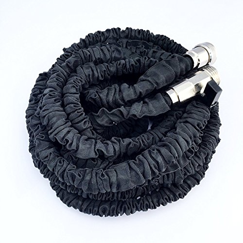 Durark 50ft Heavy Duty Expandable Hose (Black), Upgraded Brass Fittings and Shut-off Valve, Toughest, Flexible, Expanding Garden and Utility Hose (50 foot) - Extra Washers Included - Lifetime Warranty