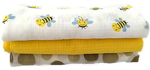 Muslin Swaddle Blankets 100% Cotton Huge Durable Breathable Yellow Brown Bumblebee Baby Blankets